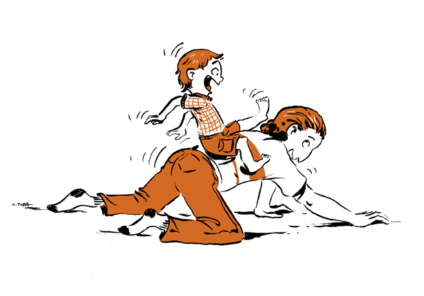 I used to do this a lot when my kiddos were younger but it’s a lot more difficult now that they’re much bigger. What you do is get on the floor on your hands and knees like you’re going to give the kids a pony ride. But once they’re settled you start bouncing around, trying to throw them off. You have to be somewhat gentle about it and be aware of how hard you’re tossing them around but it’s fun and my kids absolutely love this. They still ask to me to do it.