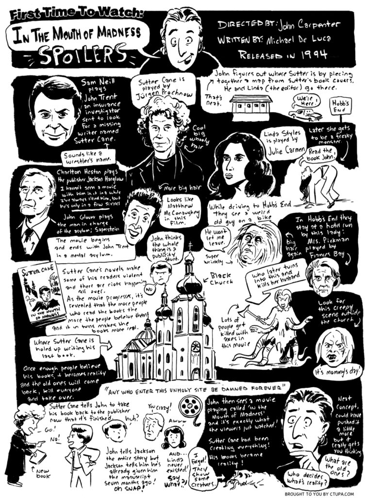 Today’s art is an illustrated review I made of the movie In the Mouth of Madness after watching it for the first time: