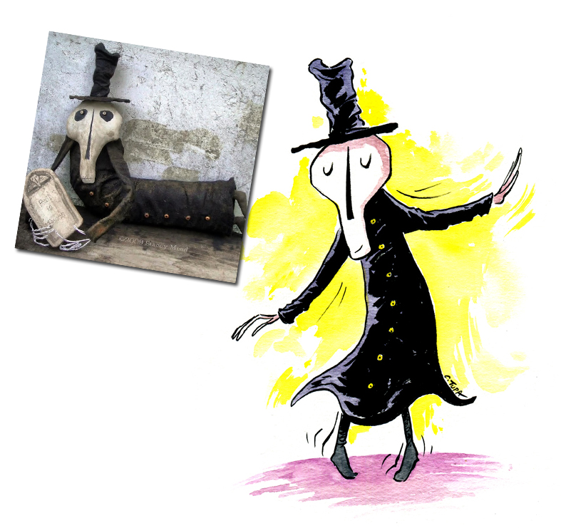 Today’s art is inspired by the lovely doll made by tatteredmoon.com. I saw her Skelli creation and thought he would be fun to sketch. Check her work out at: